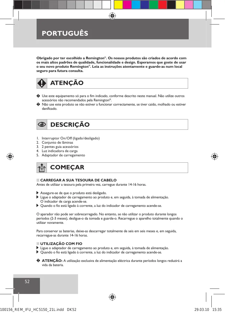 Encontre gratuitamente o manual do aparelho HC5750 REMINGTON em formato PDF.