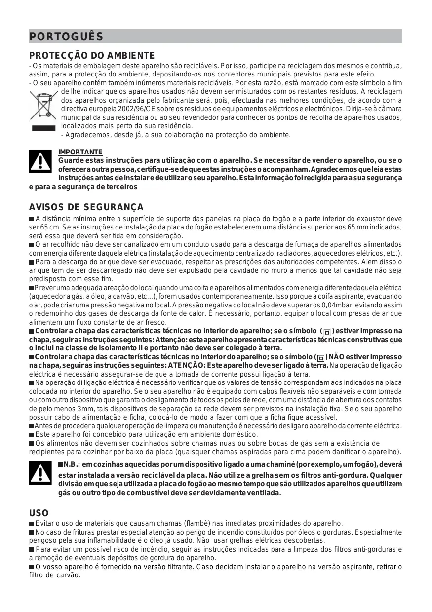 mil est interdit de flamber des mets ou de faire fonctionner des foyers gaz sans récipients de cuisson, au dessous de la hotte (les flammes aspirées risqueraient de détériorer l'appareil).