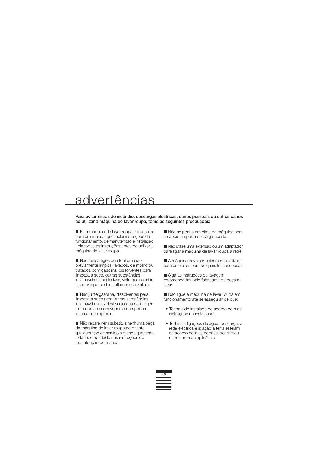 No poner la lavadora en funcionamiento hasta asegurarse de que: • Haya sido instalada de acuerdo con las instrucciones de instalación.