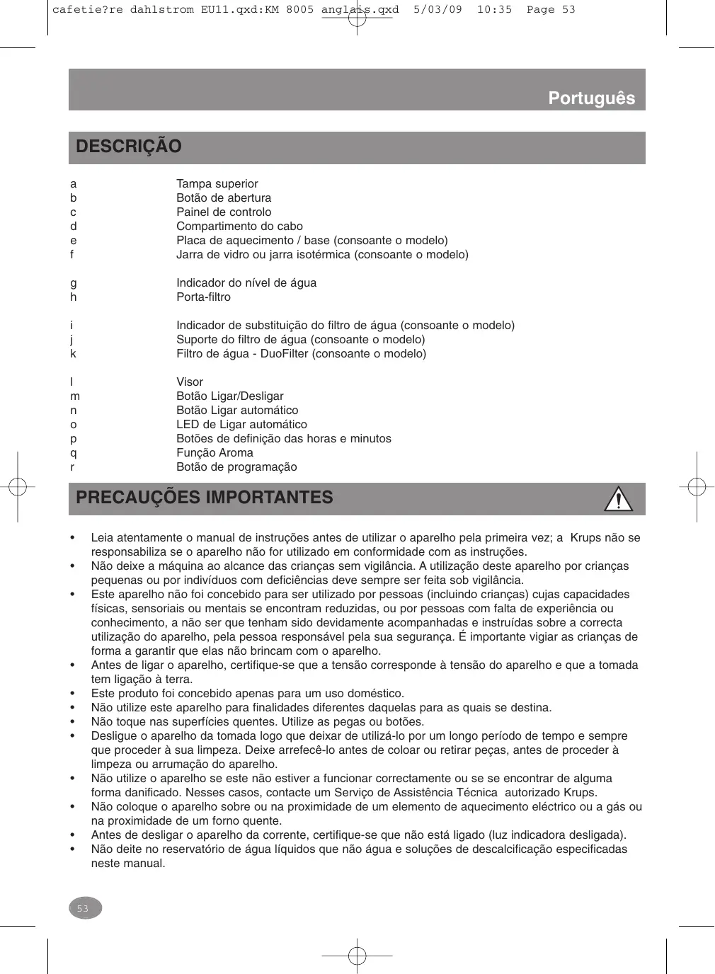 KM5055 - Cafeteira KRUPS - Manual de utilização gratuito