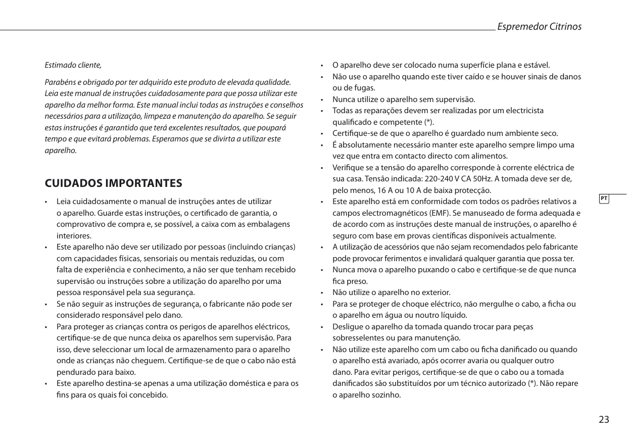Parabéns e obrigoado por ter adquirido este produit de elevada calidad. Leia estemanualde instruçõescuidadosamente para que posssautilizareste aparelho da melhor forma. Este manual inclui todas as instruçõese conselho necessários para autilização, limpeza e manutençãodo aparelho. Se seguir estas instruções é garantido que terá excellentes resultados, que poupará tempo e que evitará problemas. Esperamos que se divirta autilizar este aparelho.