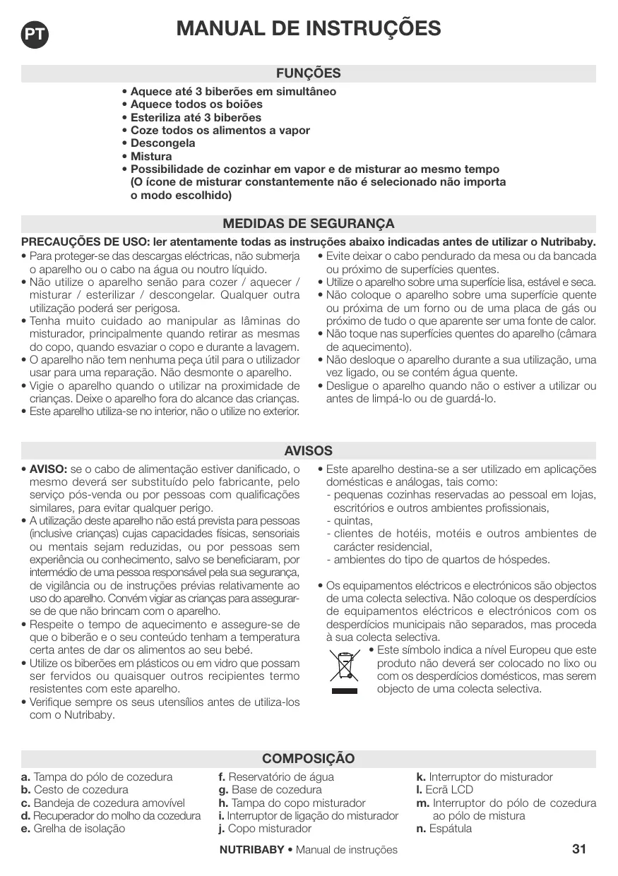 Encontre gratuitamente o manual do aparelho A001100 NUTRIBABY BABYMOOV em formato PDF.