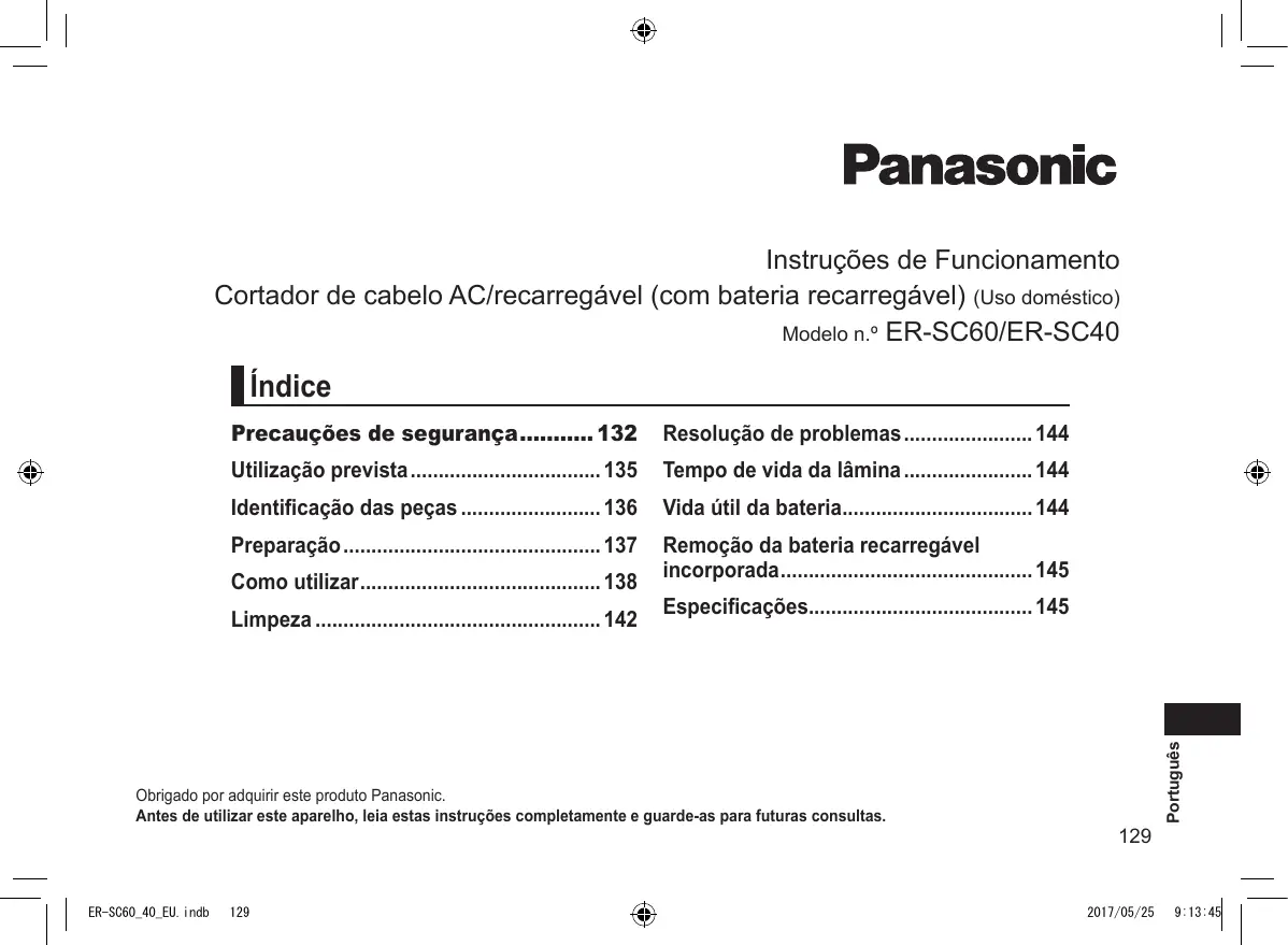 Encontre gratuitamente o manual do aparelho ERSC60 PANASONIC em formato PDF.