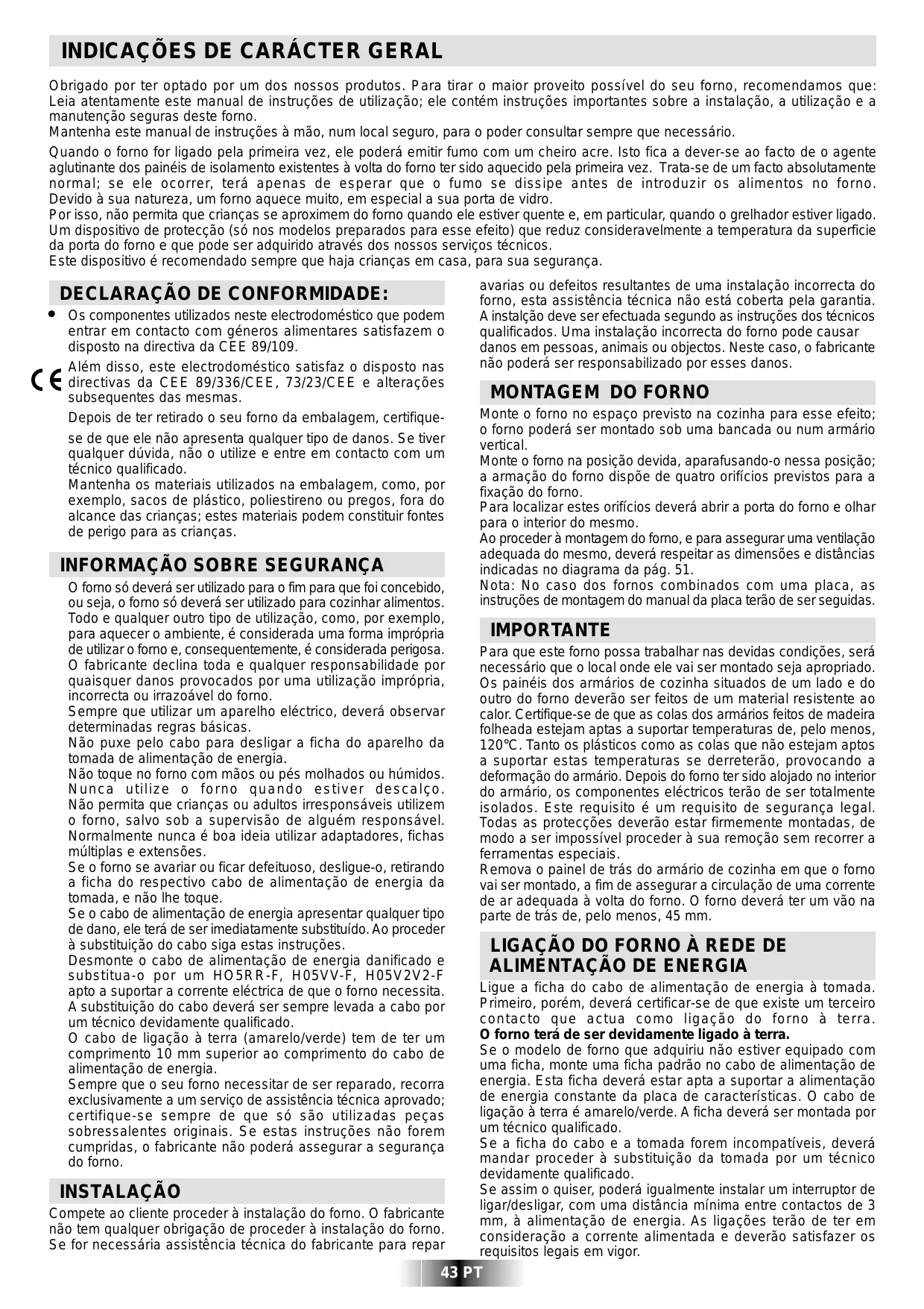 Obrigado por ter optado por um dos outros produits. Para tirar o maiorproveito possivel do seu forno, recomendamos que: Leia atentamente este manual de instruções deutilização; ele contém instruções importantes sobre a instalação, autilização e a manutenção seguras deste forno.