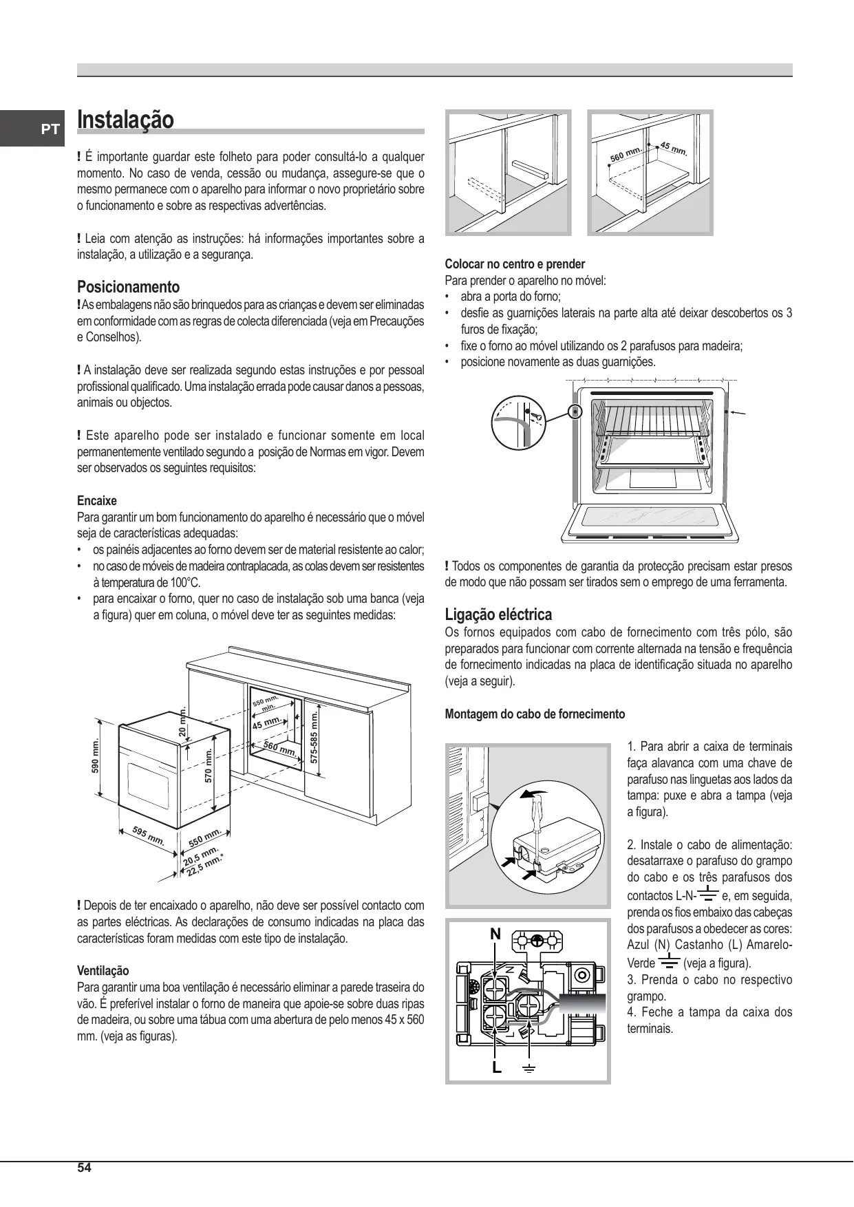 Para garantir uma boa ventilação é necessário eliminar a parede traseira do vão. É preferível instalar oorno de maneira que apoie-se sobre das rivas de madeira, ou sobre uma tábia com uma abertura de pelo menos 45 x 560 mm. (veja as figuras).