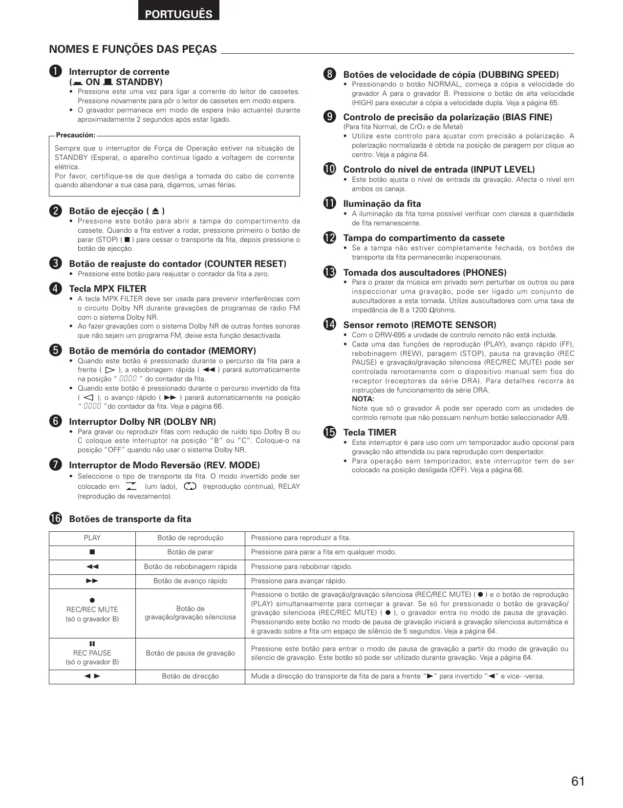 MANUAL DE UTILIZADOR DRW-695 DENON