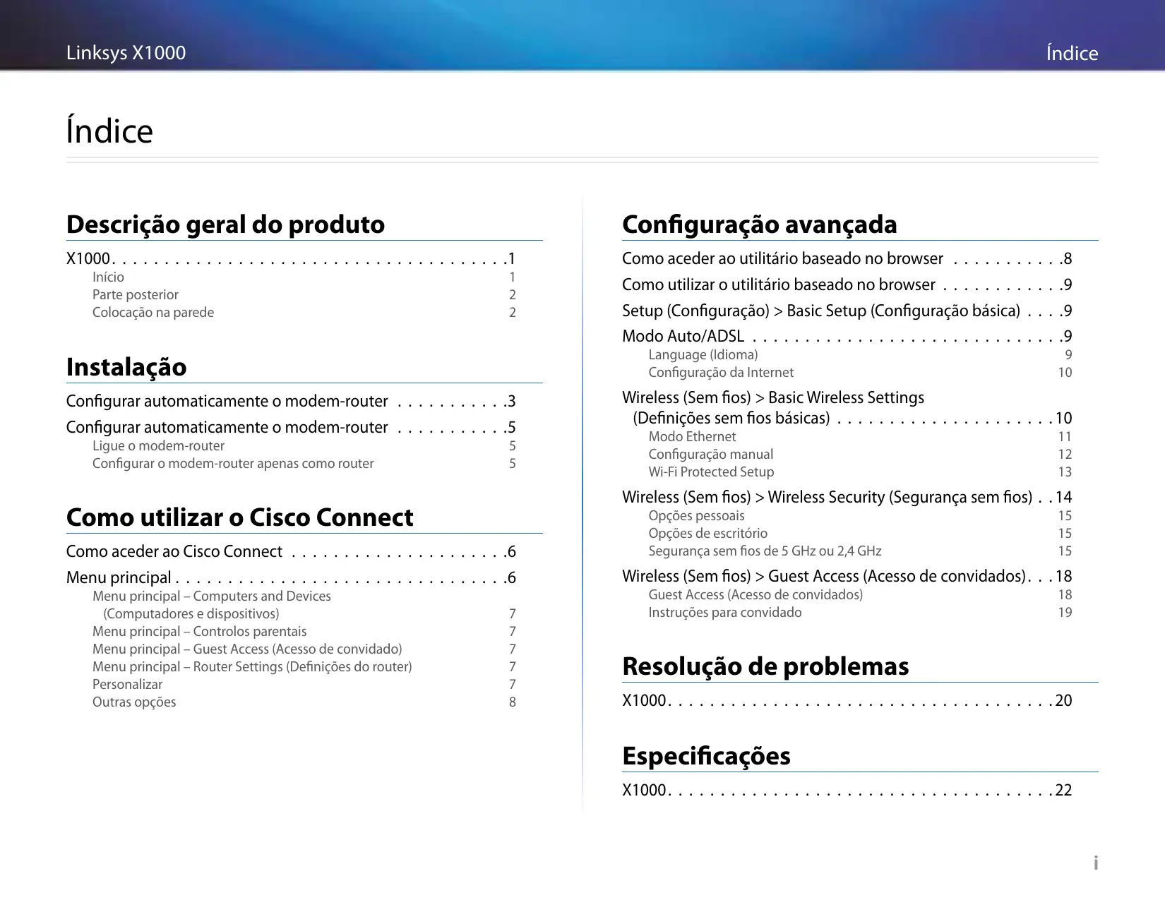 Encontre gratuitamente o manual do aparelho X1000 LINKSYS em formato PDF.