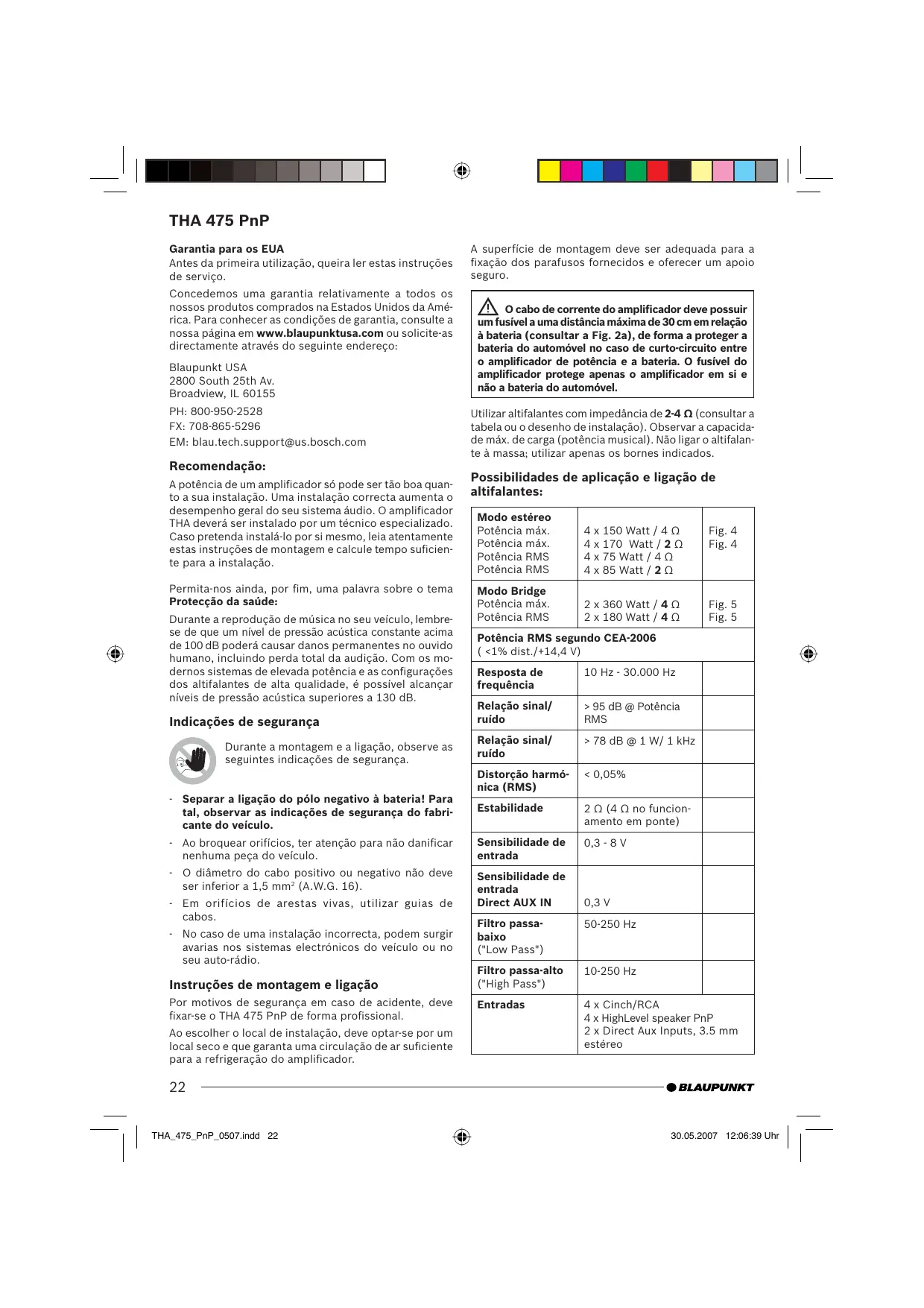 THA 475 PNP - Amplificador de potência BLAUPUNKT - Manual de utilização gratuito