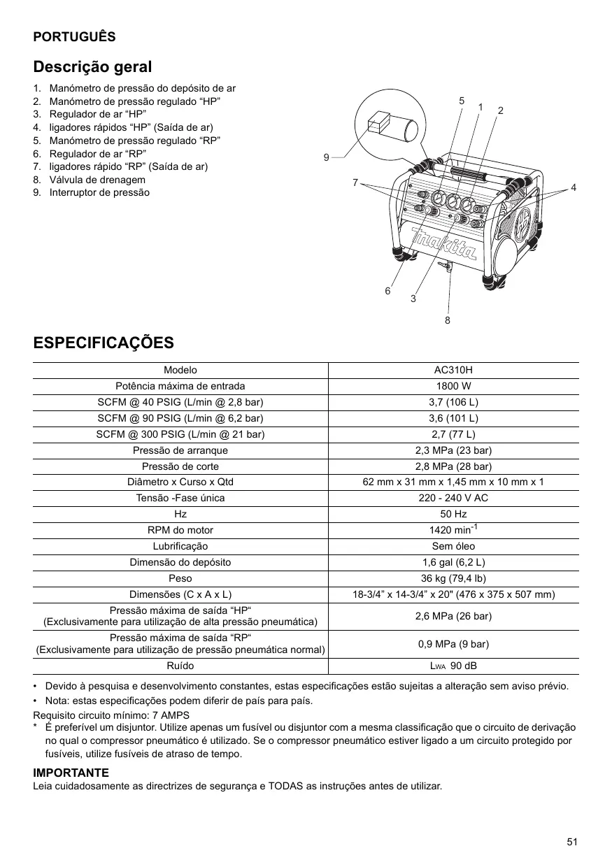 AC310H - Compressor MAKITA - Manual de utilização gratuito