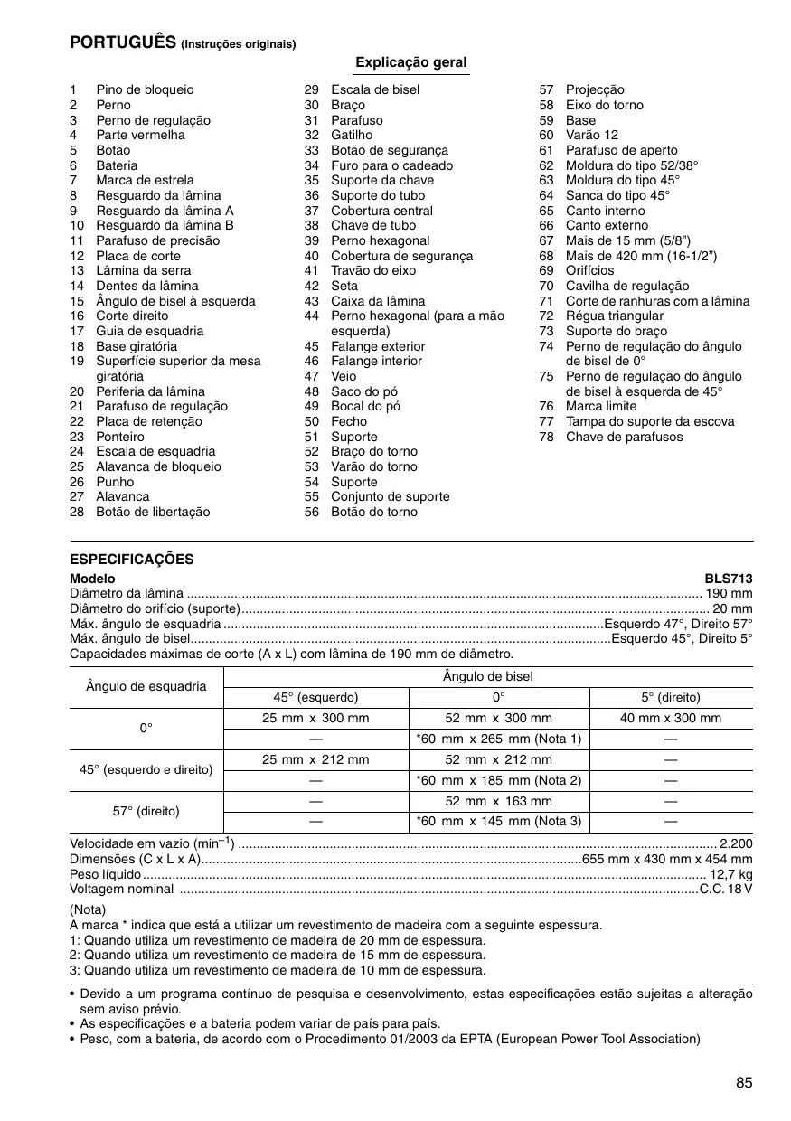 BLS713 - MAKITA - Manual de utilização gratuito