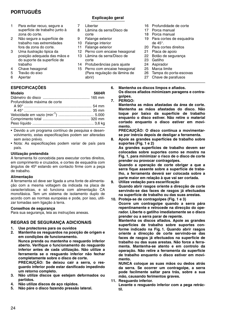 - certifique-se de que o disco da serra é o indicado para a velocidade do veio da ferramenta. GUARDE ESTAS INSTRUÇÕES.