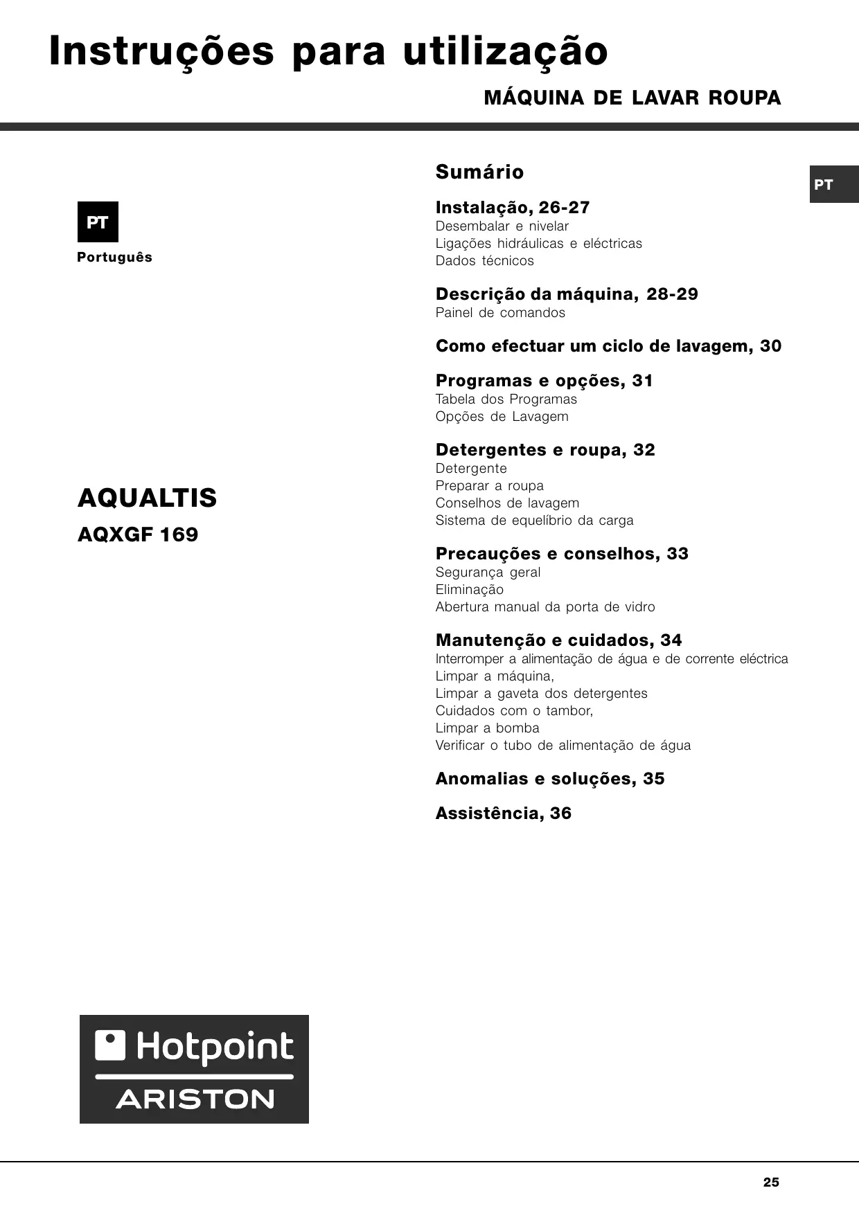 AQXGF 169 - Máquina de lavar HOTPOINT-ARISTON - Manual de utilização gratuito