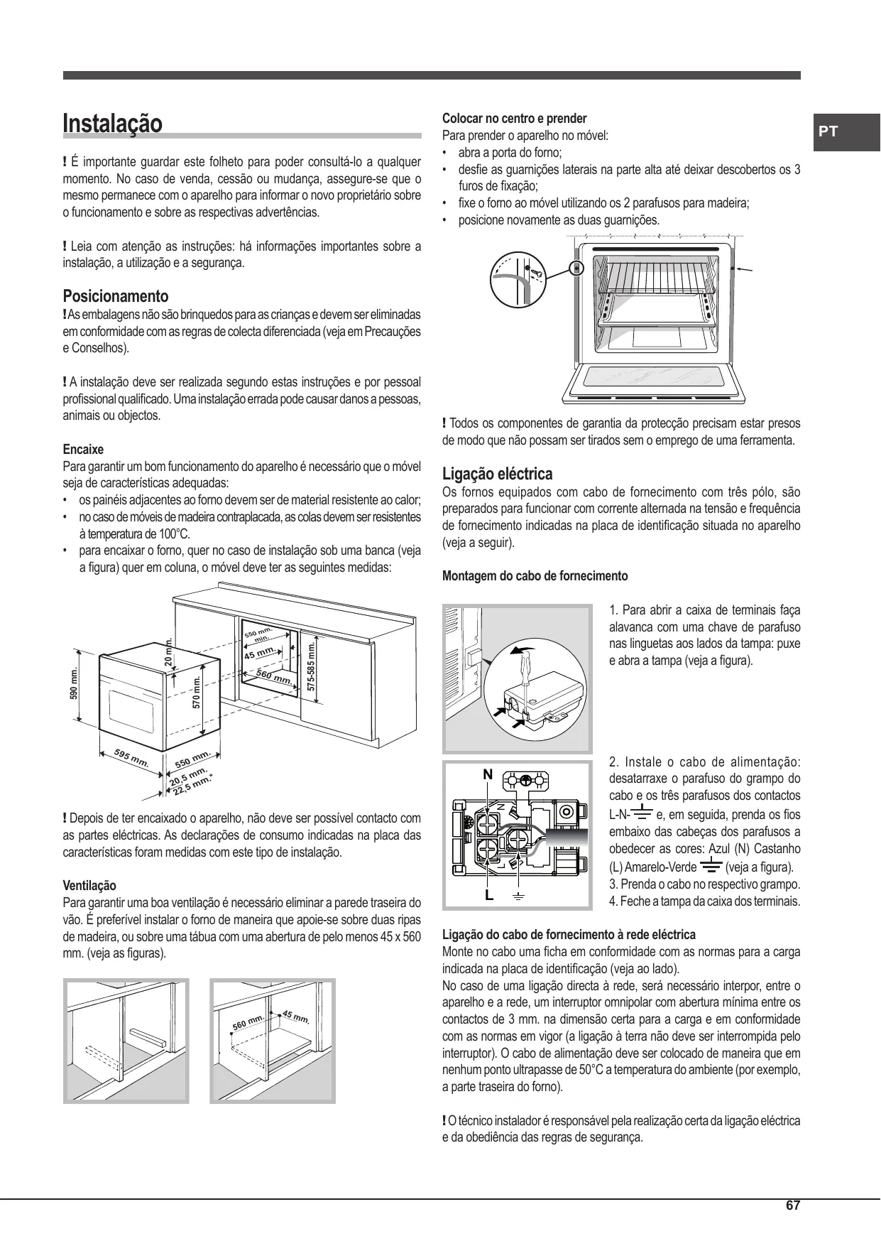 Instalação ! É importante guardar este folheto para poder consultá-lo a qualquer momento. No caso de venda, cessão ou mudança, assegure-se que o mesmo permanece com o aparelho para informar o novo proprietário sobre o funcionamento e sobre as respectivas advertências.