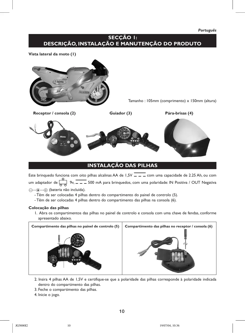 (bateria não incluída). - Têm de ser colocadas 4 pilhas dentro do compartimento do painel de controlo (5). - Têm de ser colocadas 4 pilhas dentro do compartimento das pilhas na consola (6). Colocação das pilhas 1. Abra os compartimentos das pilhas no painel de controlo e consola com uma chave de fendas, conforme apresentado abaixo. Compartimento das pilhas no painel de controlo (5)