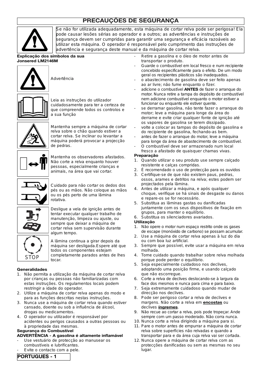MANUAL DE UTILIZADOR LM 2146 M JONSERED