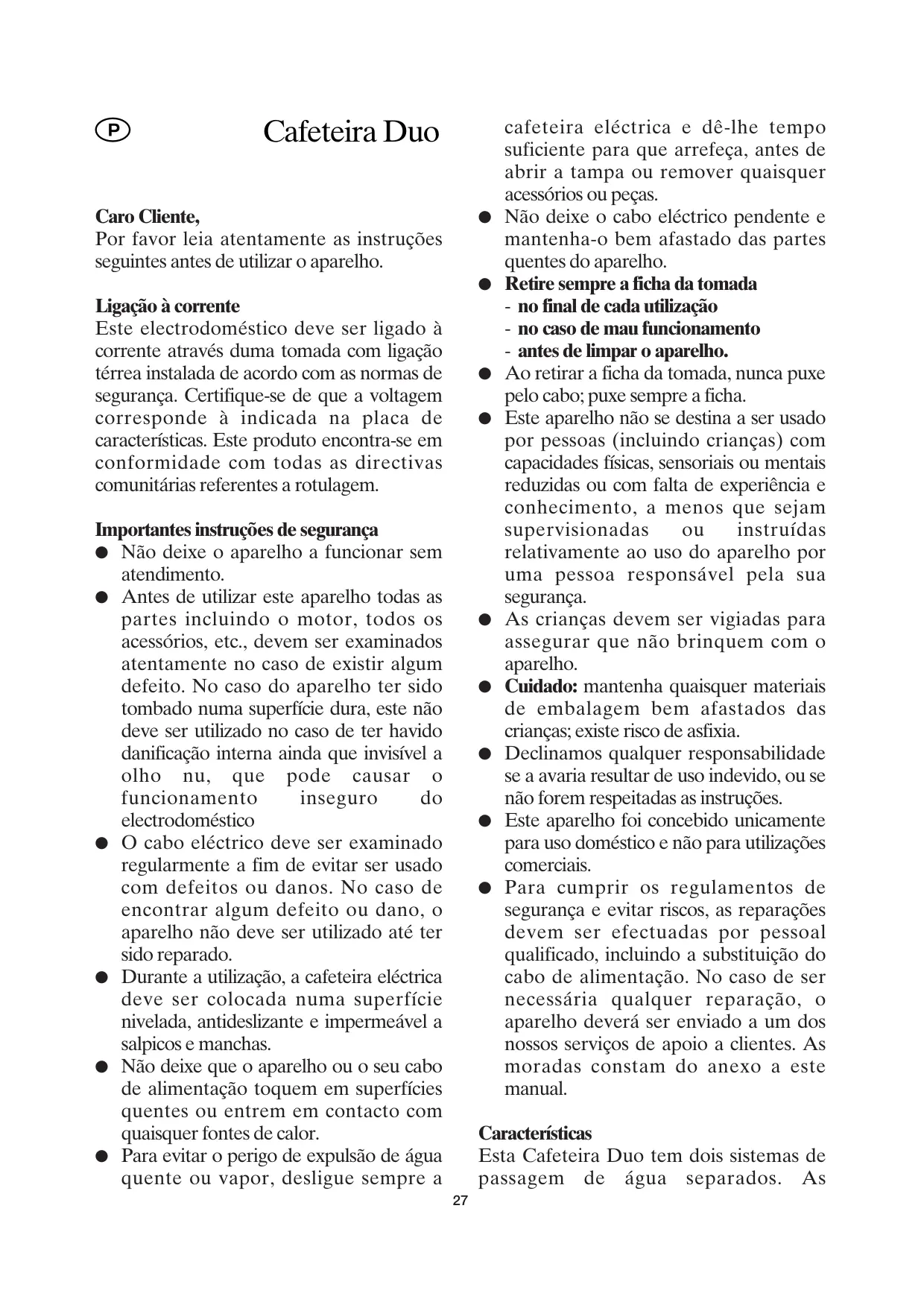 © Pendant l’utilisation, la cafetière doit être placée sur une surface plane, antidérapante et imperméable aux