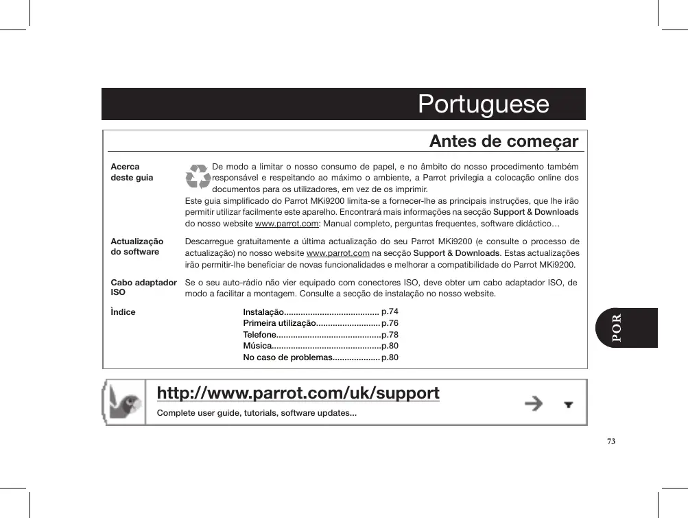 À Sresponsävel e respeitando ao méximo o ambiente, a Parrot priegia a colocaçäo online dos documentos para os utizadores, em vez de os imprimir.