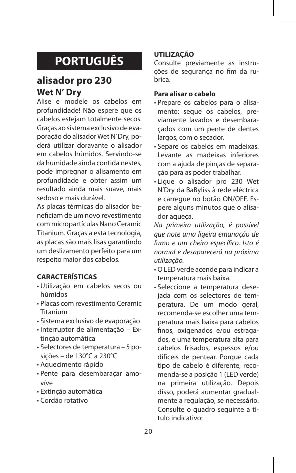 Encontre gratuitamente o manual do aparelho ST30E BABYLISS em formato PDF.