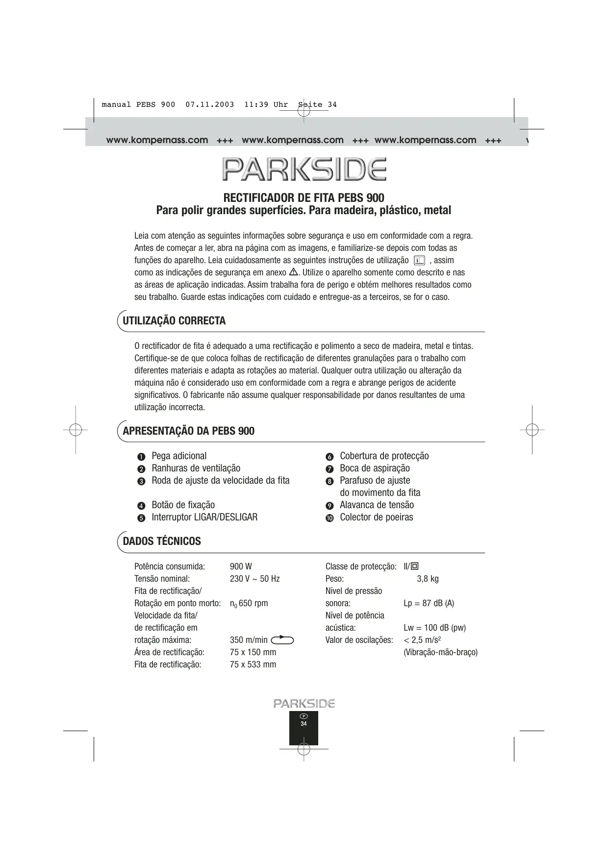 Encontre gratuitamente o manual do aparelho KH 3115 BELT SANDER PARKSIDE em formato PDF.