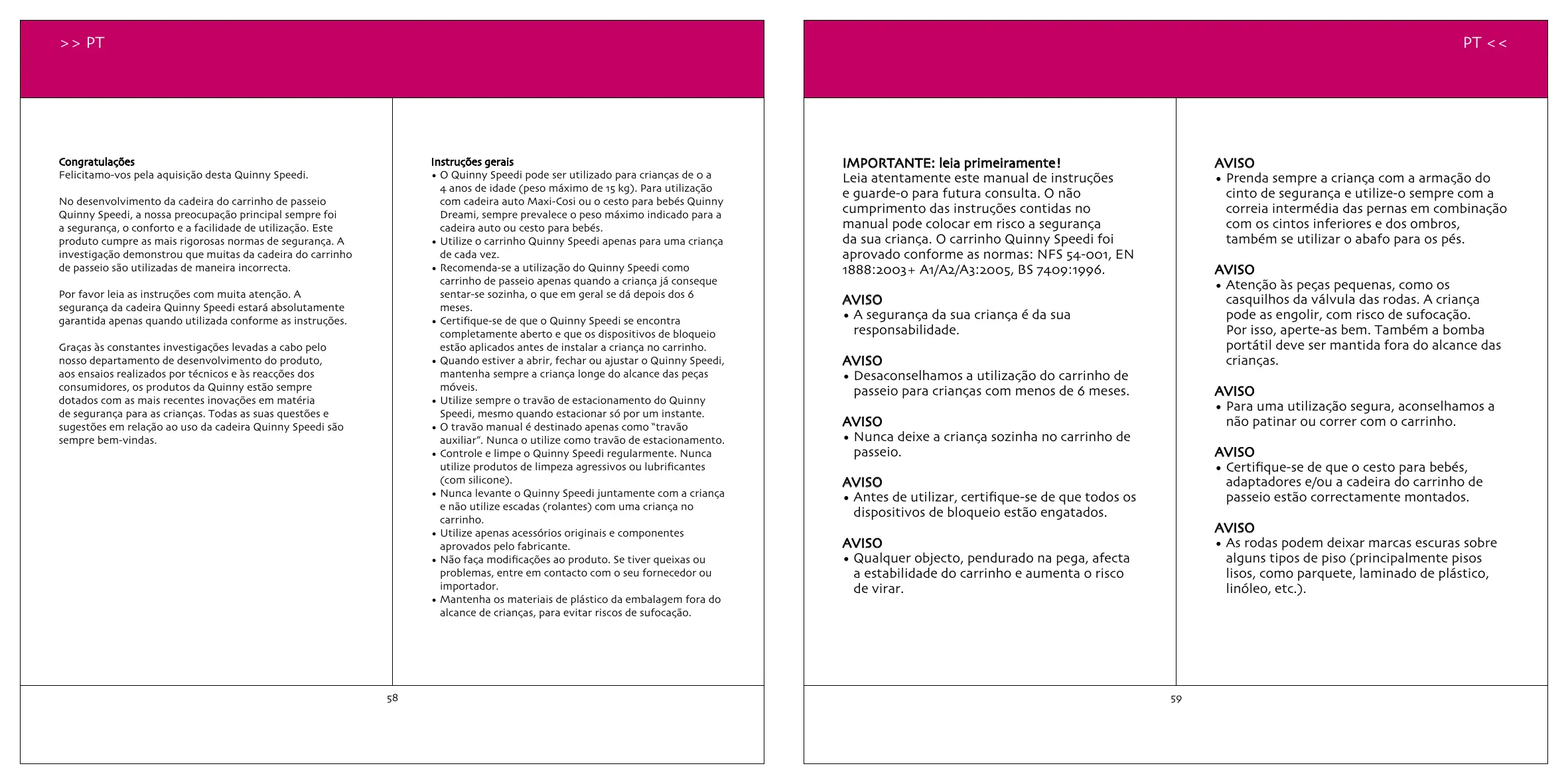 Baixe as instruções para o seu Carrinho de bebê em formato PDF gratuitamente! Encontre o seu manual SPEEDI - QUINNY e retome o controlo do seu dispositivo eletrónico. Nesta página estão publicados todos os documentos necessários para a utilização do seu dispositivo. SPEEDI da marca QUINNY.