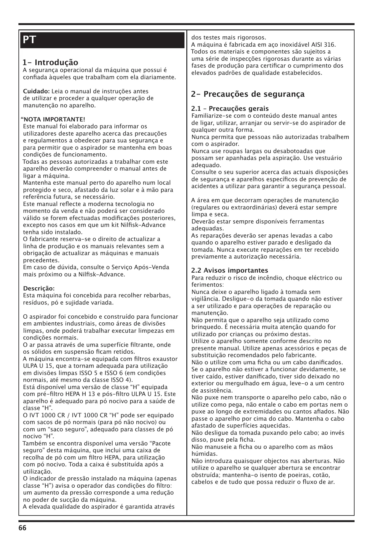 MANUAL DE UTILIZADOR IVT1000CR NILFISK