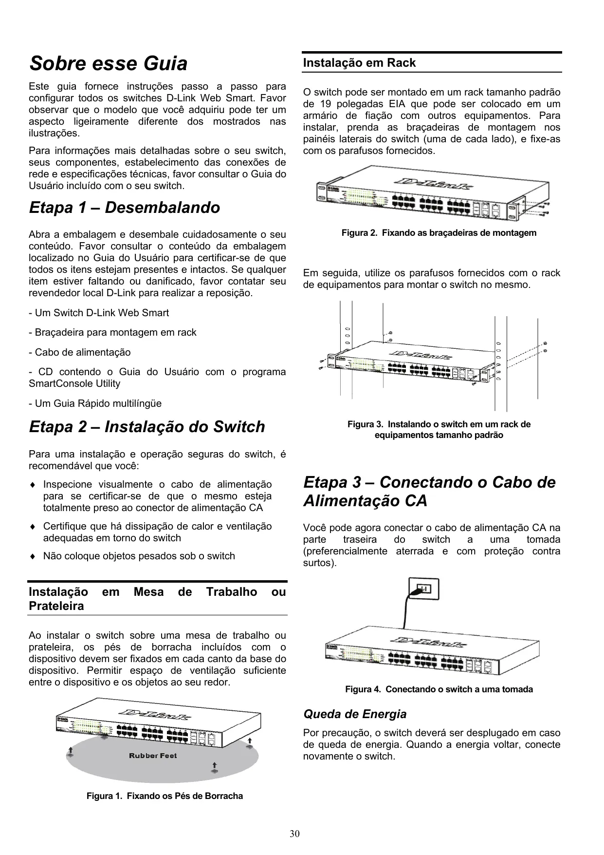 Este guia fornece instruções passo a passo para configurar todos os switches D-Link Web Smart. Favor observar que o Modelo que você adquiriu pode ter um aspecto ligeiramente diferente dosestrados nas ilustrações.