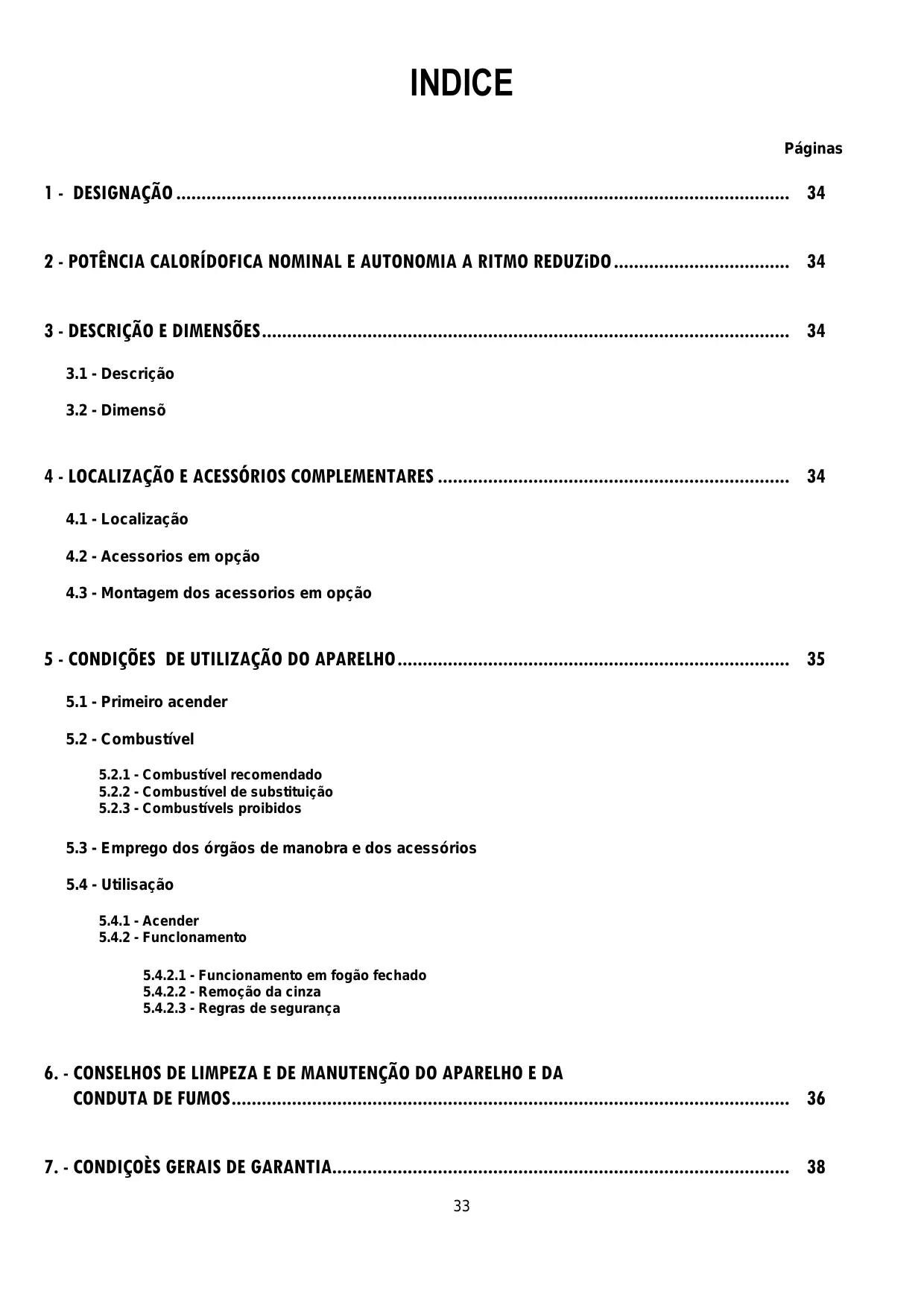 5 - CONDIÇÕES DE UTILIZAÇÃO DO APARELHO.............................................................................. 35