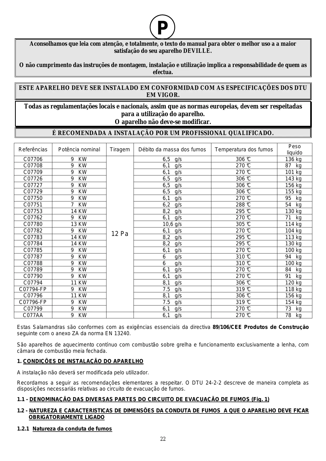 1.2 - TIPO Y CARACTERISTICAS DIMENSIONALES DEL CONDUCTO DE HUMO A QUE DEBE CONECTARSE OBLIGATORIAMENTE LA ESTUFA 1.2.1 Tipo del conducto de humo 18