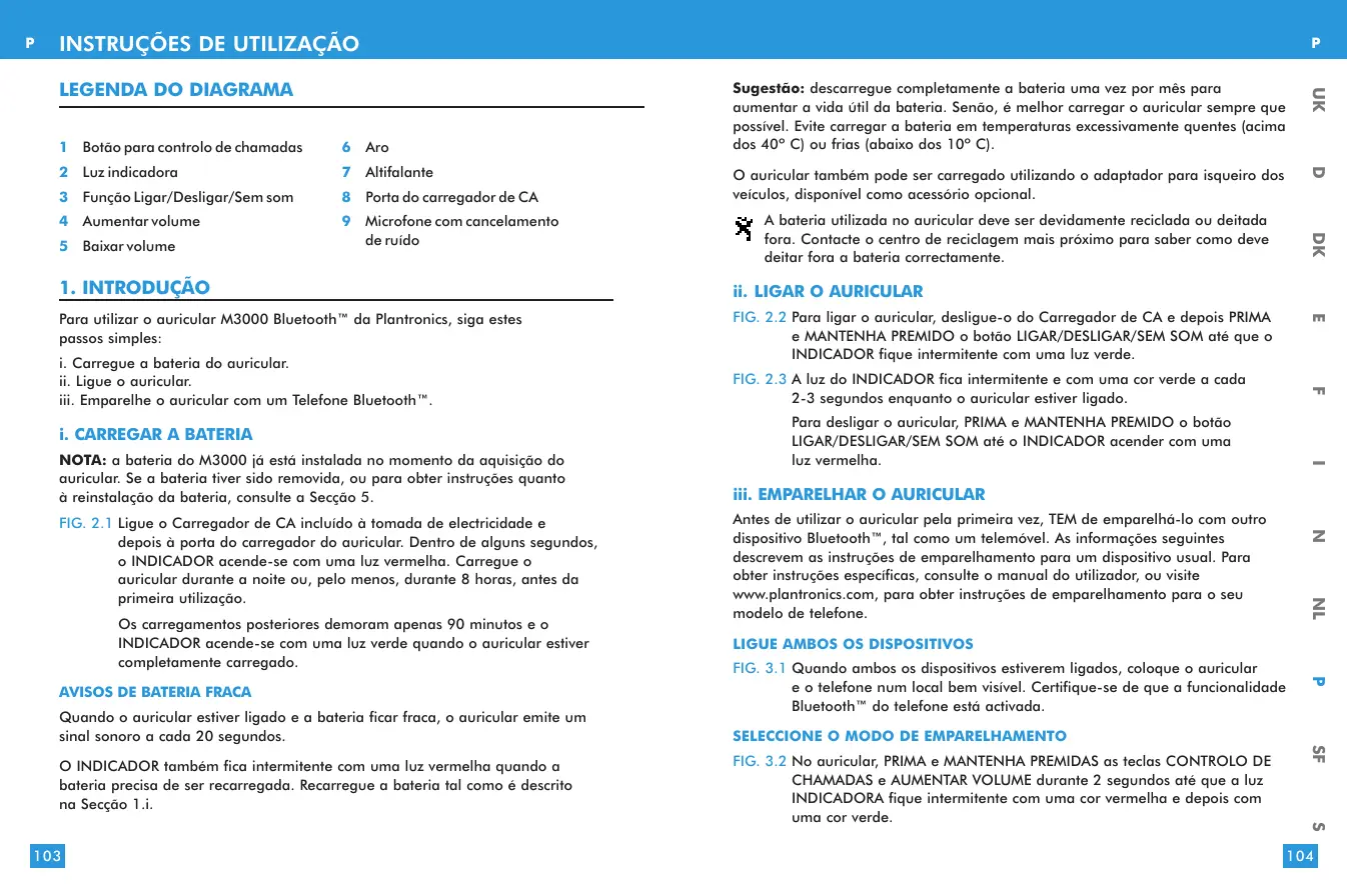 M3000 - Fone Bluetooth PLANTRONICS - Manual de utilização gratuito