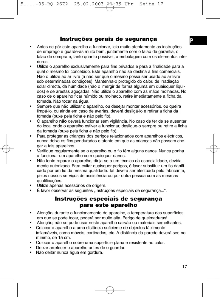 BQ 2672 - Grelhador elétrico CLATRONIC - Manual de utilização gratuito