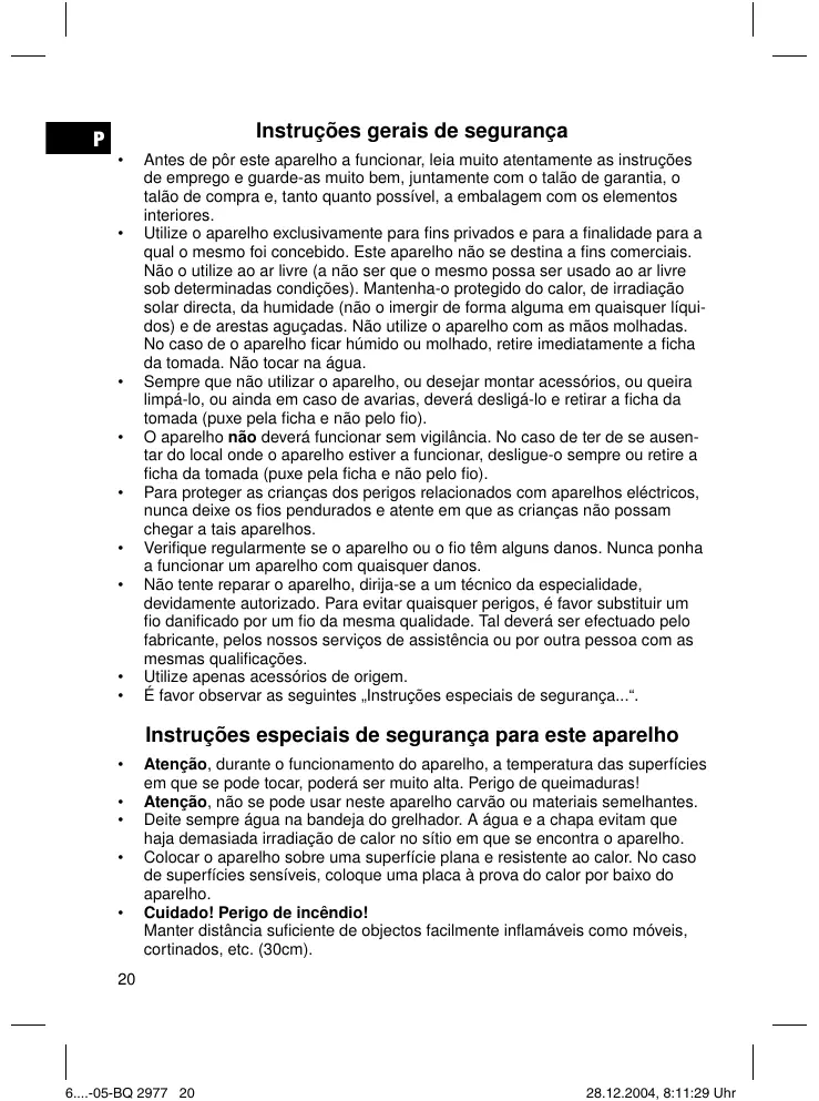 Manual de instruções Párgina 20