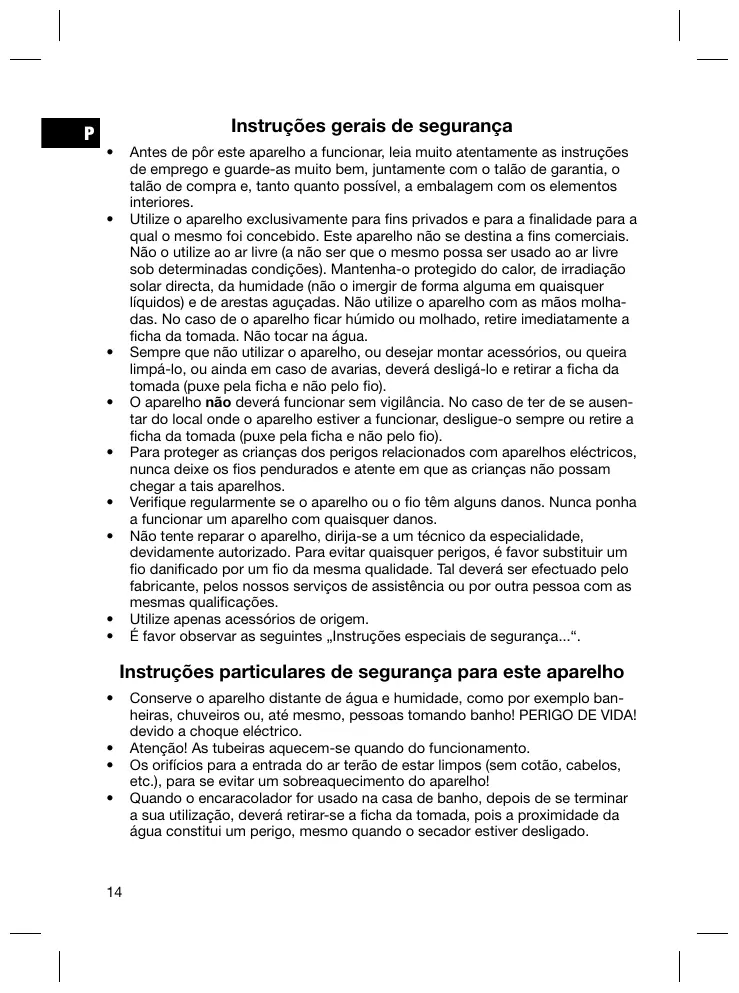 - Utilize o aparelho exclusivement para fins privados e para a finalidade para a qual o mesmo foi concebido. Este aparelho não se destina a fins commerciais. Não o utilize ao ar livre (a não ser que o mesmo possa ser uso ao ar livre sob determinadas condições). Mantenha-o protegado do calor, de irradiação solar directa, da humidade (não o imergir de forma alguma em quaisquer liquidos) e dearestas aguçadas. Não utilize o aparelho com as性和 molhadas. No caso de o aparelho fazer Haramido ou molhado, retire imeditamente a ficha da tomada. Não tocar na agua.