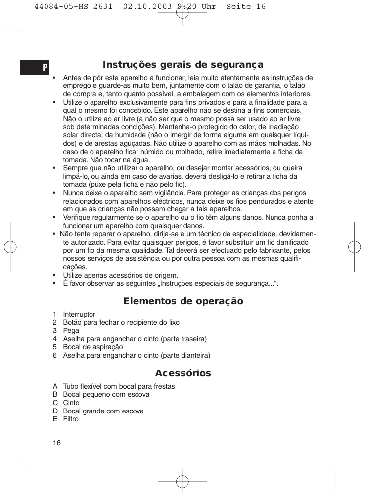 Seite 16 Instruções gerais de segurança