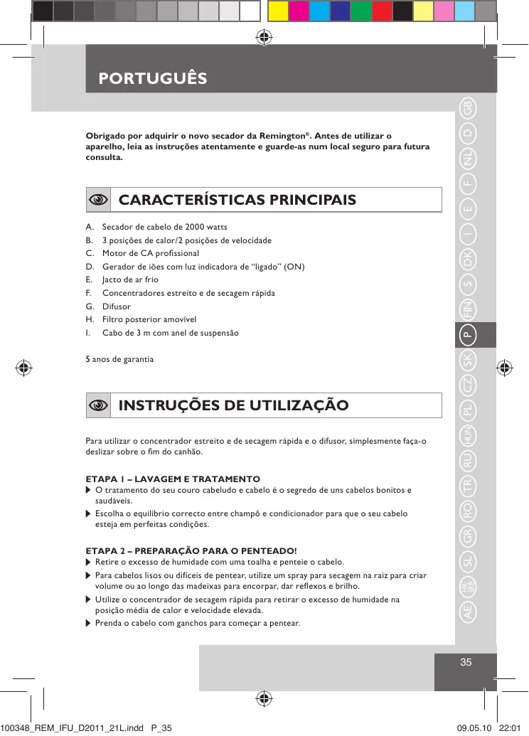 Obrigado por adquirir o novo secador da Remington. Antes de'utilizar o aparelho, leia as instruções atentamente e guarde-as num local seguro para futura consulta.