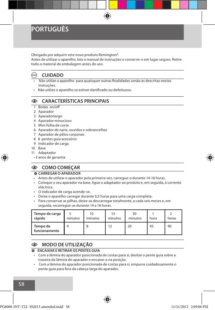 Encontre gratuitamente o manual do aparelho PG6060 REMINGTON em formato PDF.