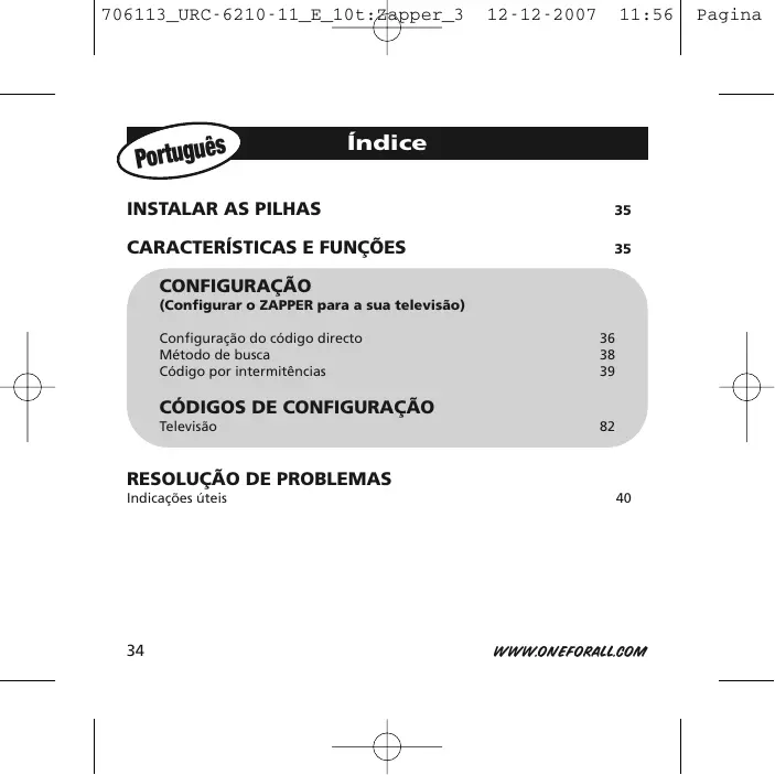 MANUAL DE UTILIZADOR URC 6210 ONEFORALL