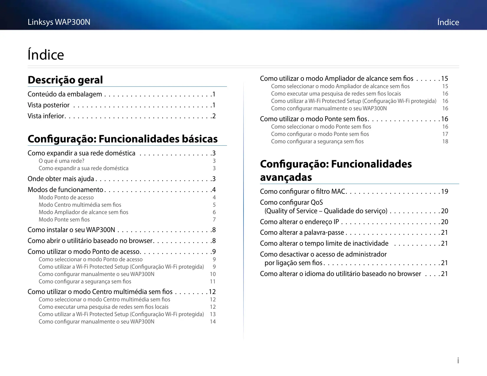 Encontre gratuitamente o manual do aparelho WAP300N LINKSYS em formato PDF.