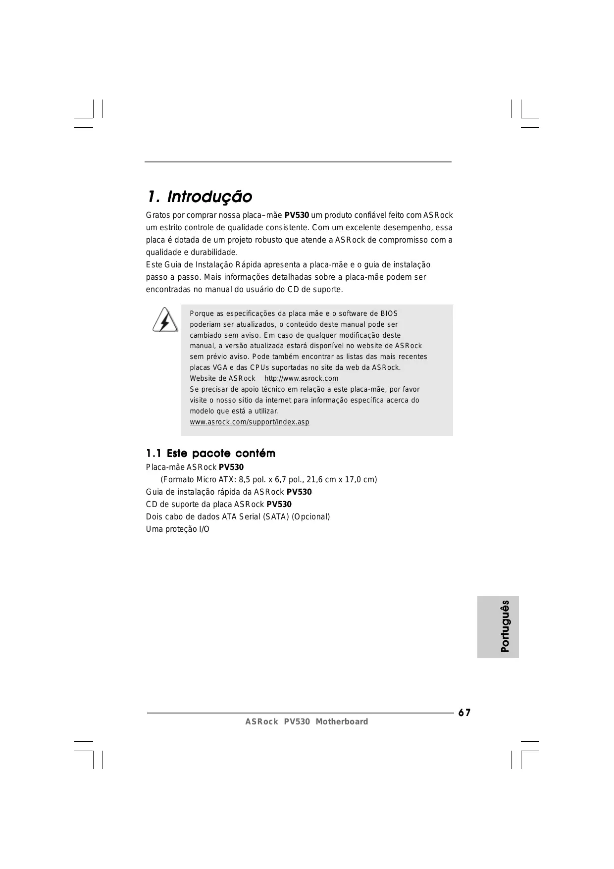 Encontre gratuitamente o manual do aparelho PV530 ASROCK em formato PDF.