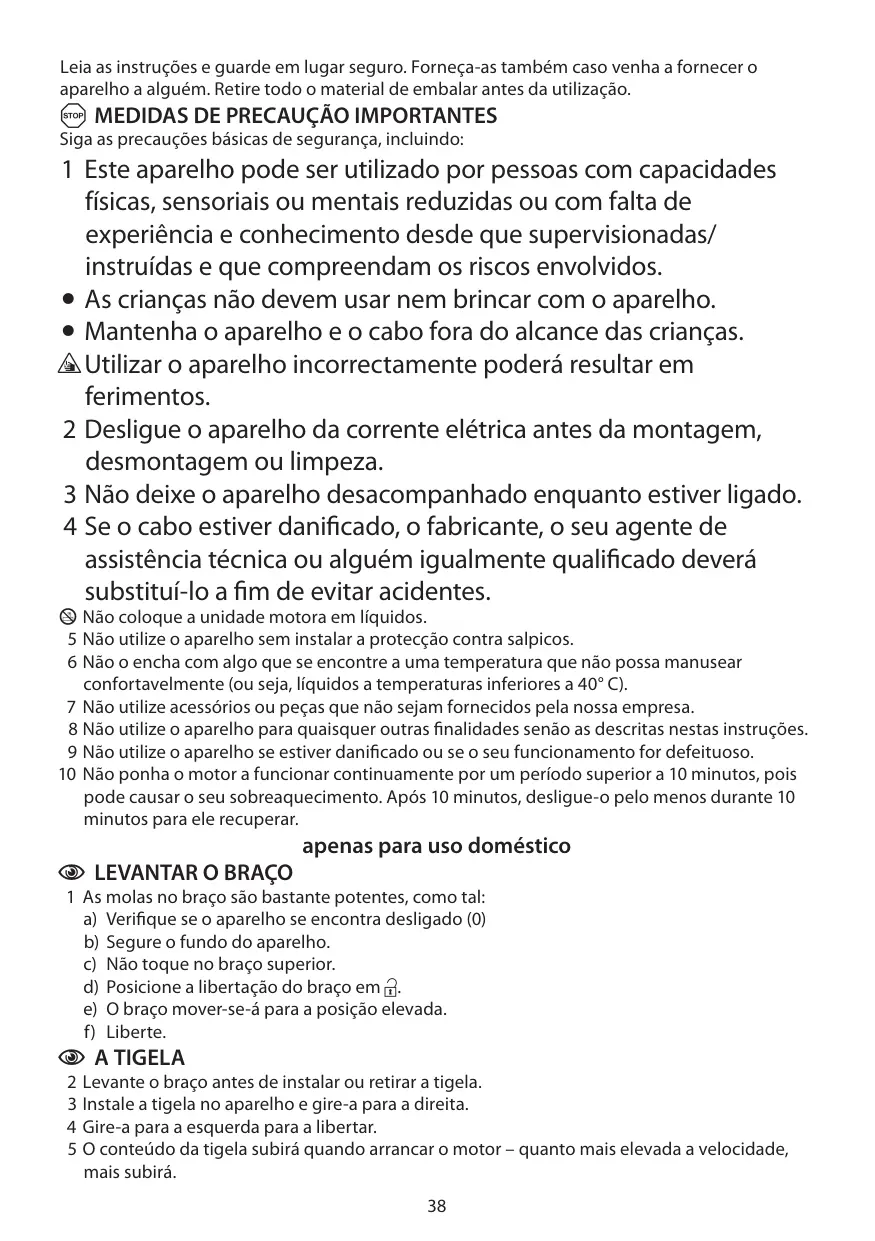 apenas para uso doméstico @ LEVANTAR O BRAÇO