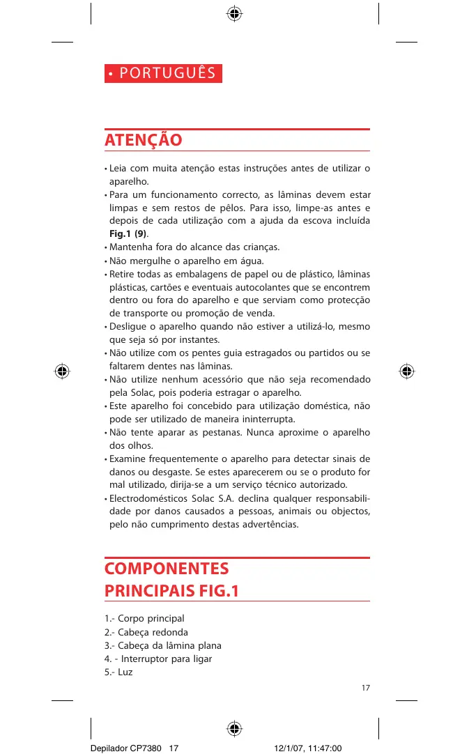 Encontre gratuitamente o manual do aparelho CP7380 SOLAC em formato PDF.
