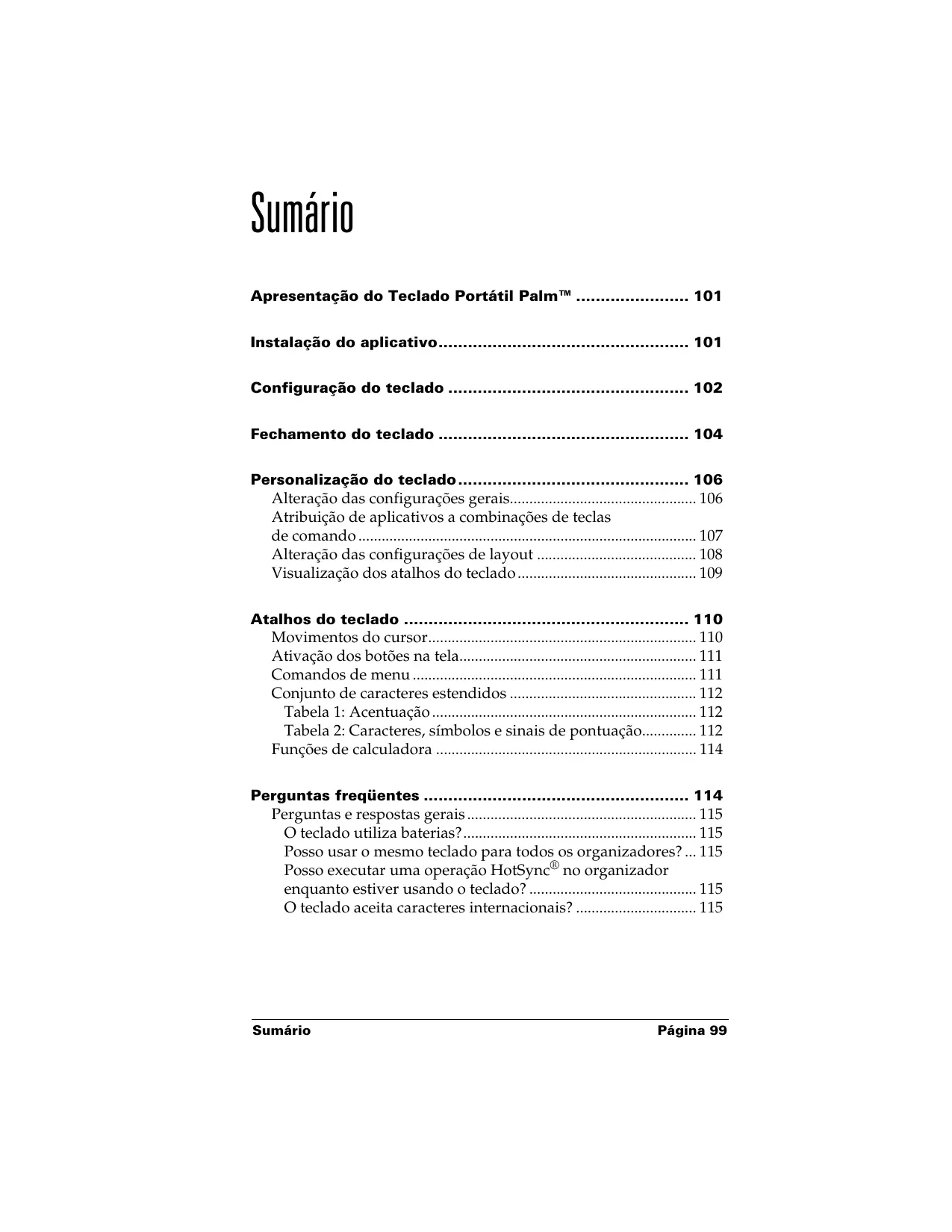 Posso executar uma operação HotSync® no organizador quando estiver using o teclado? 115
