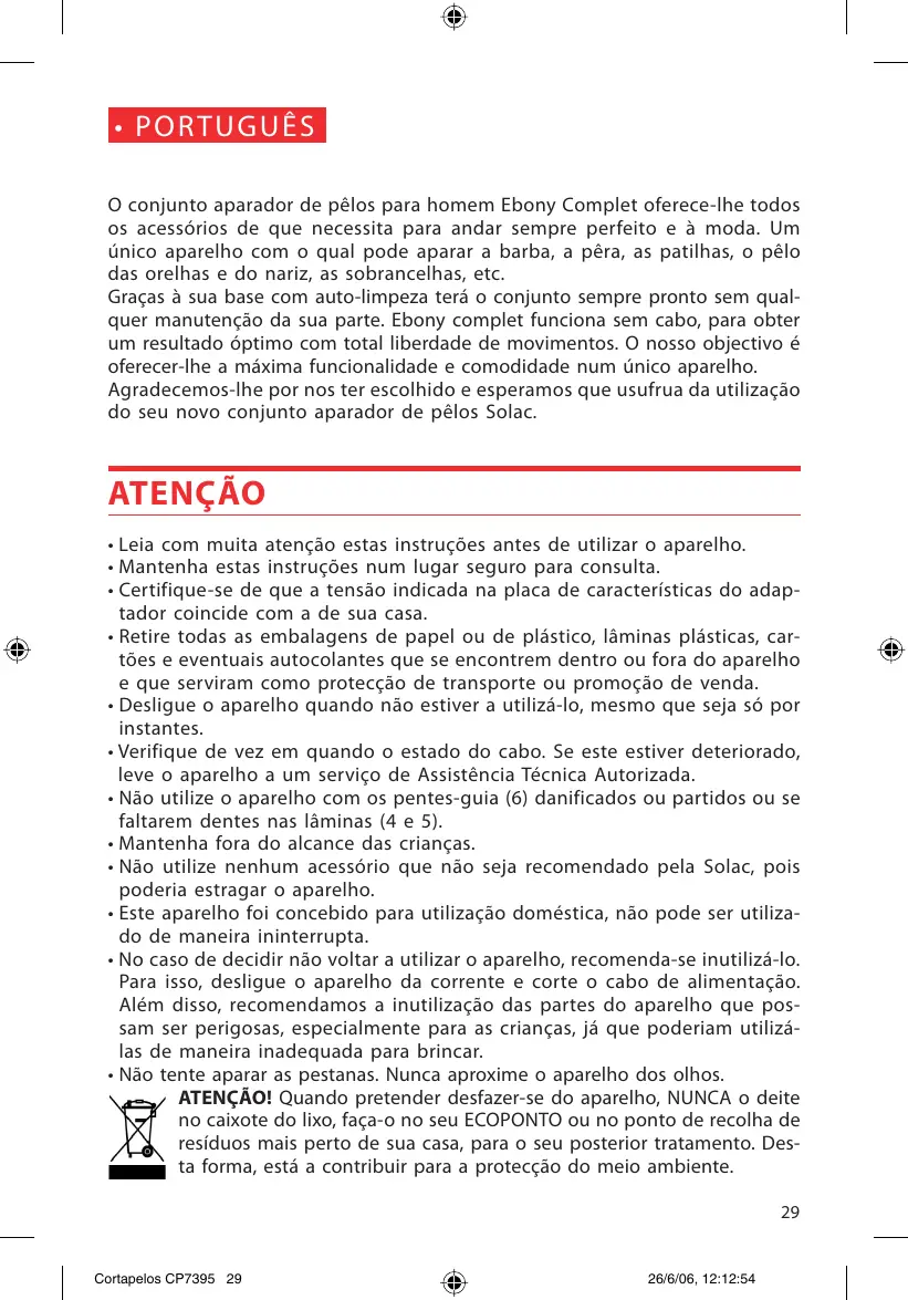 Agradecemos-lhe por nos ter escolhido e esperamos que usufrua dautilização do seu novo Conjunto aparador de pélos Solac.