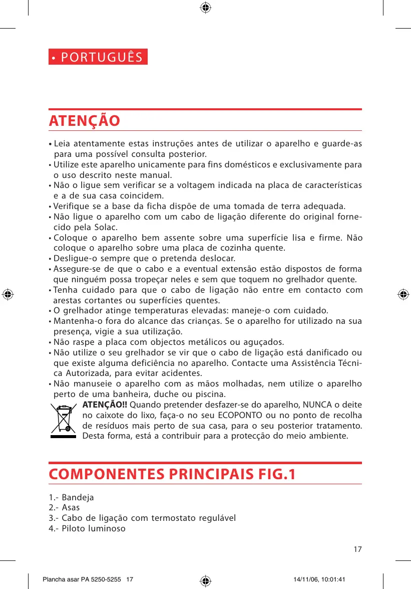 Encontre gratuitamente o manual do aparelho PA5255 SOLAC em formato PDF.