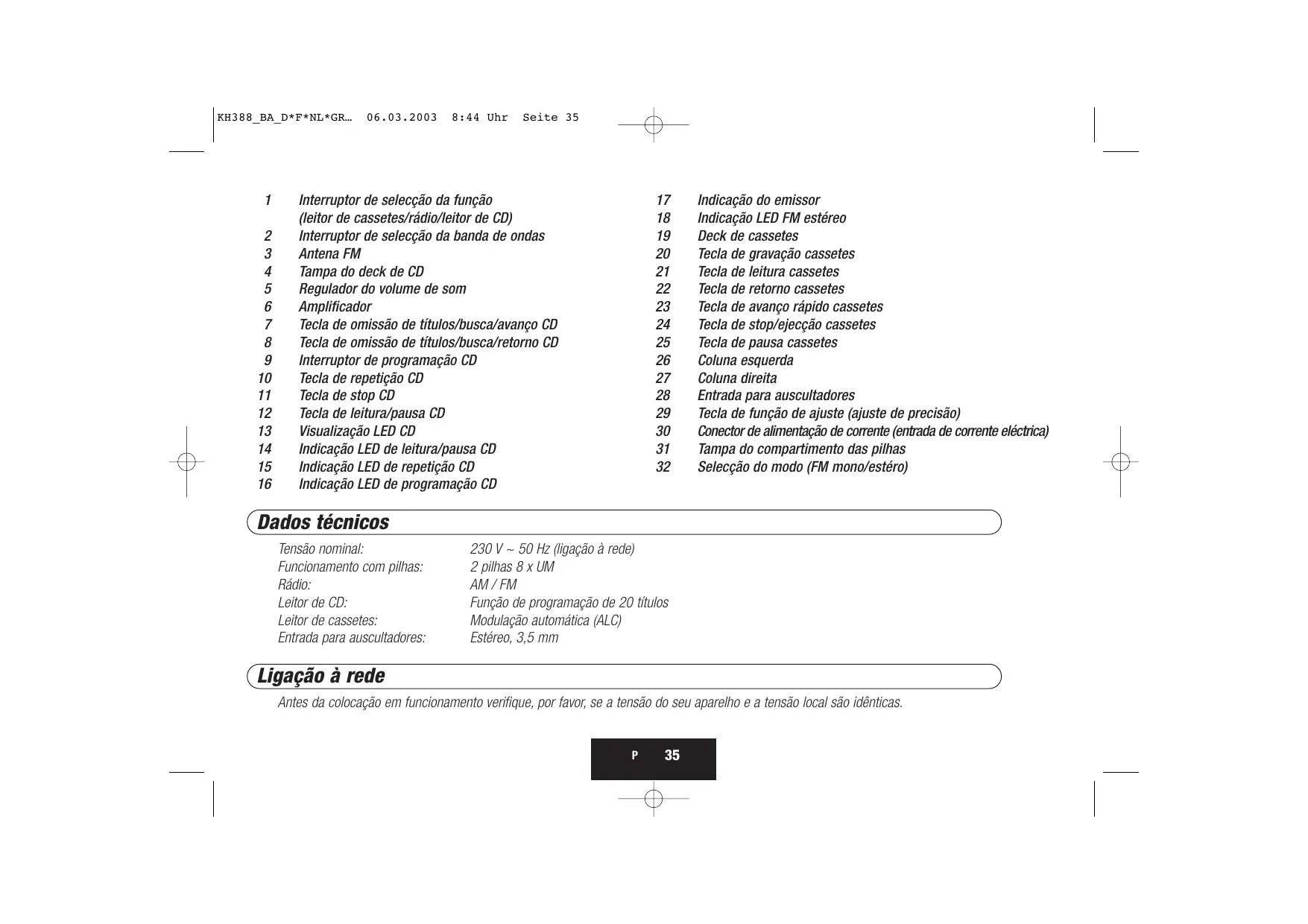 Tecla de avanço rápido cassetes Tecla de stop/ejecção cassetes Tecla de pausa cassetes Coluna esquerda Coluna direita Entrada para auscultadores Tecla de função de ajuste (ajuste de precisão) Conector de alimentação de corrente (entrada de corrente eléctrica) Tampa do compartimento das pilhas Selecção do modo (FM mono/estéro)