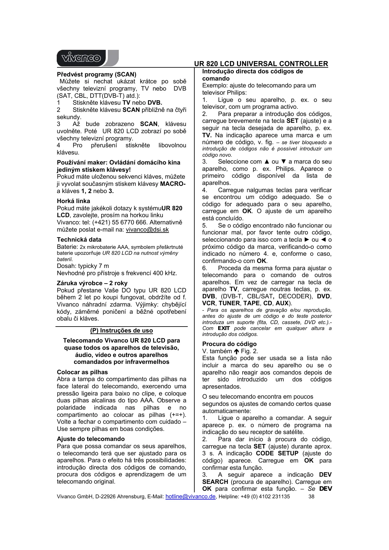 UR 820 LCD UNIVERSAL CONTROLLER - Controle remoto universal VIVANCO - Manual de utilização gratuito