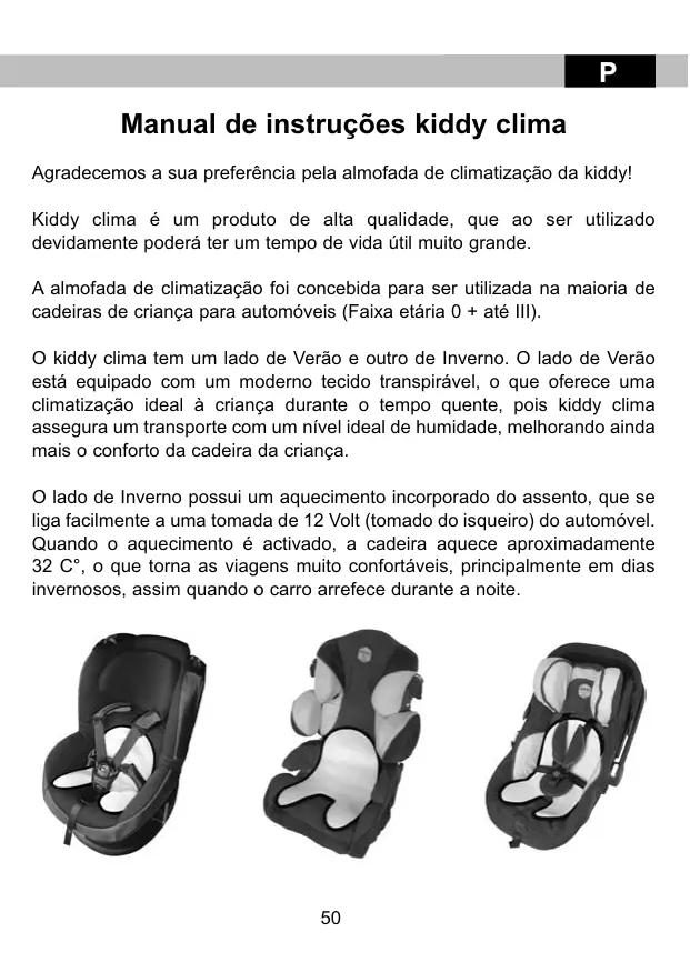 (du groupe 0+ au groupe III). Le kiddy clima a une face été et une face hiver. La face été est fabriquée dans un matériaux respirant, qui assure une circulation d’air optimal à votre enfant tout au long de la saison chaude. kiddy clima évacue idéalement l’humidité et améliore le confort du siège de votre enfant. La face hiver est pourvue d’un élément chauffant qui se branche tout simplement sur une prise allume cigare. Quand vous branchez le kiddy clima le siège sera chauffé à une température de 32° celcius. Ce qui rend le voyage confortable particulièrement durant les froides journées d’hiver même quand le véhicule a passé la nuit à l’extérieur.