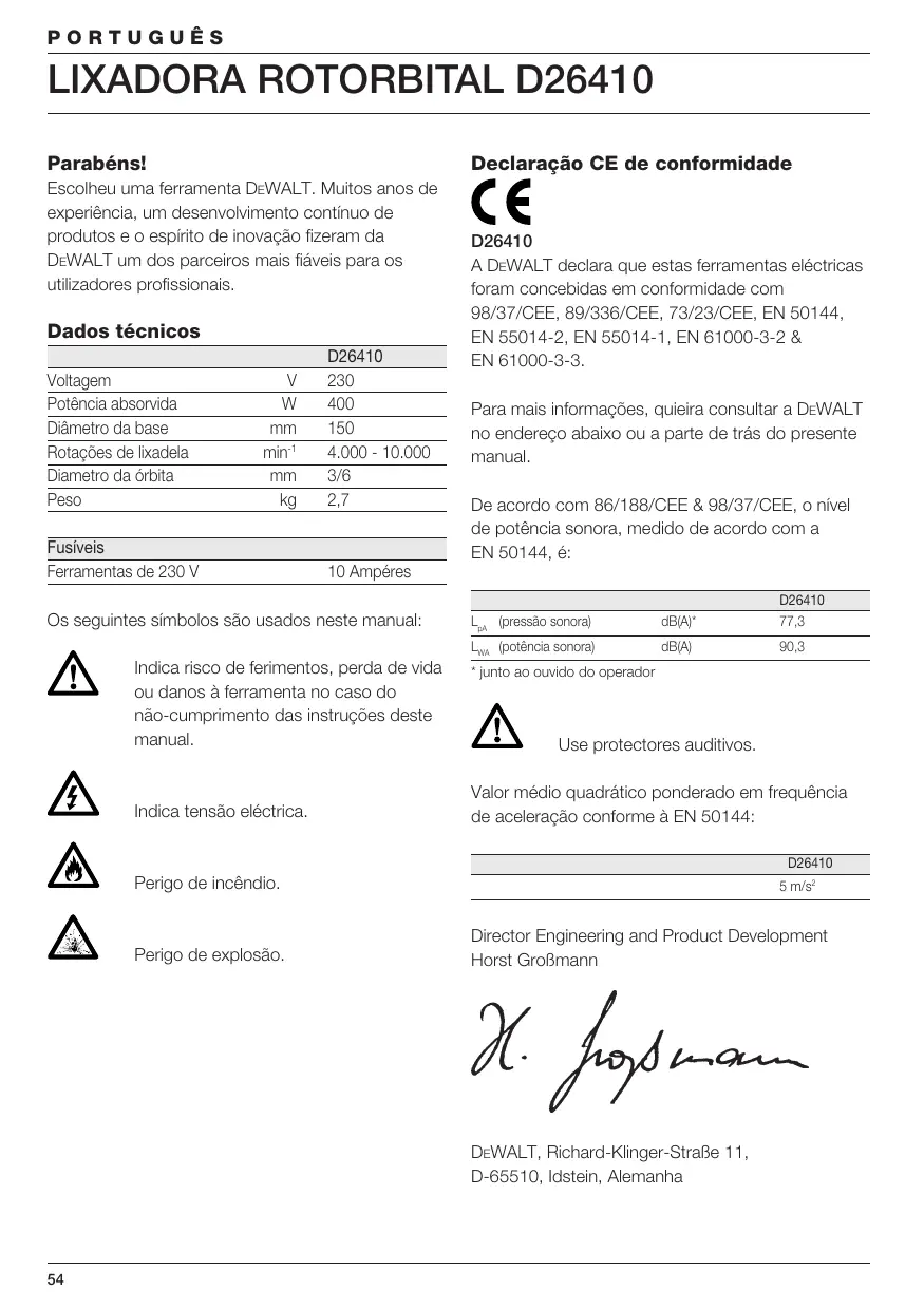 MANUAL DE UTILIZADOR D26410 DEWALT