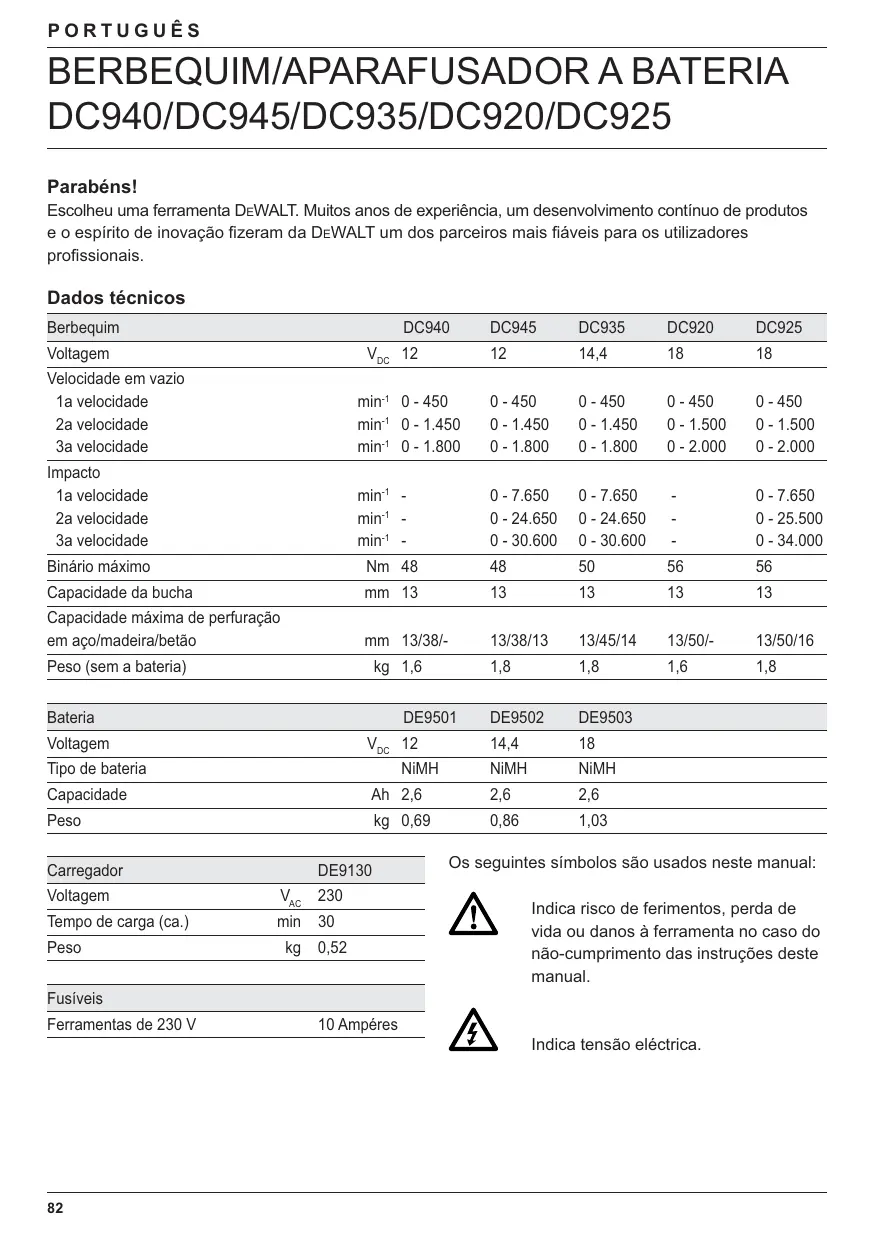 DC935KB - Ferramentas elétricas DEWALT - Manual de utilização gratuito
