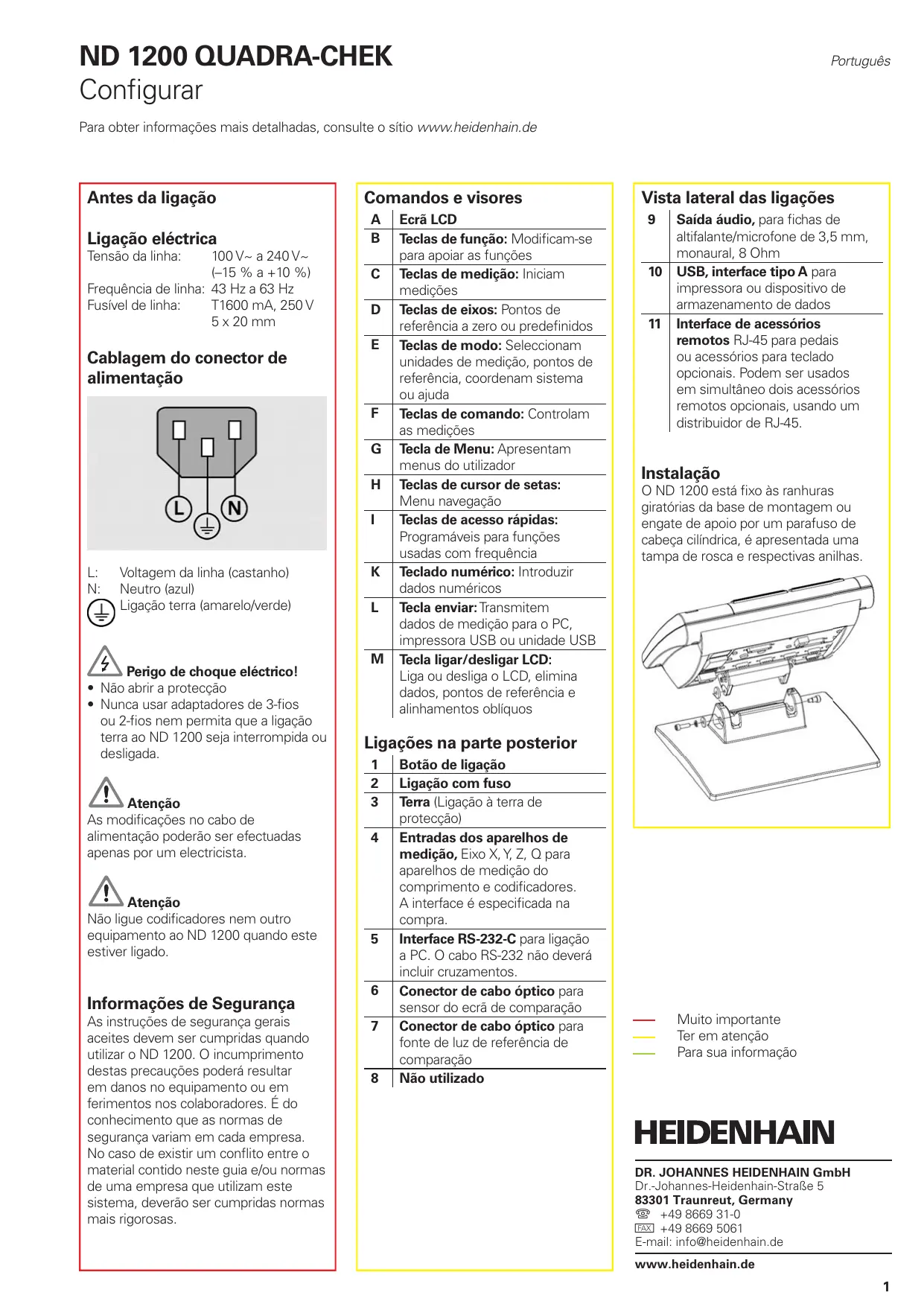 Encontre gratuitamente o manual do aparelho ND 1200 HEIDENHAIN em formato PDF.