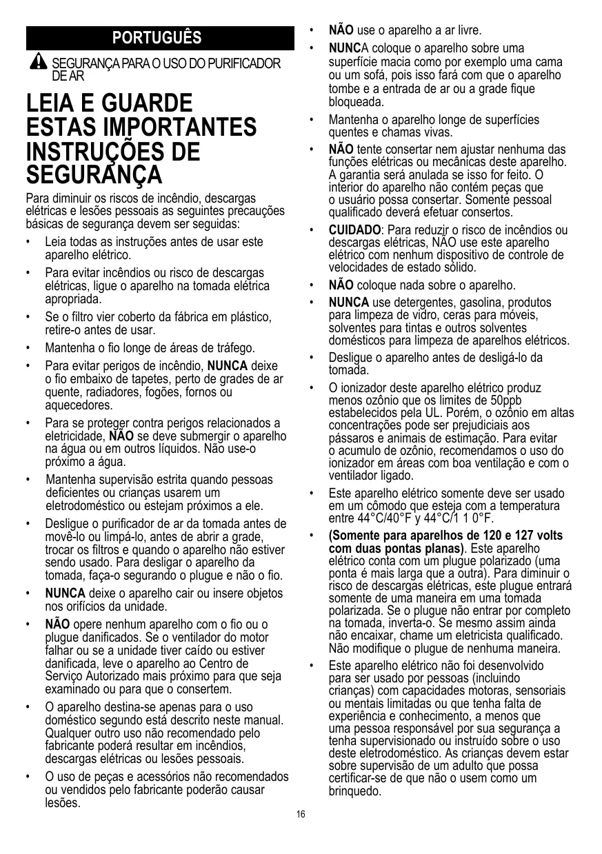 + Leia todas as instruçôes antes de usar este aparelho elétrico.